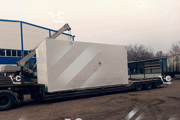 - В согласованное время подадим трал. Выполним погрузку механизированным способом. Надёжно зафиксируем конструкции на платформе